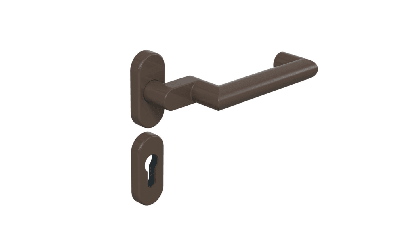 HEWI Drückergarnitur 162PCR01.640; Produkttyp: Drückergarnitur; Produkttyp (Hersteller): Drückergarnitur; Ausführung: Rosette; Befestigungsart Drückerrosette (außen): verdeckt verschraubt; Befestigungsart Drückerrosette (innen): verdeckt verschraubt; Befestigungstechnik: ohne Stütznocken; Montageart: aufliegend; Form Drückerrosette: oval; Form Schlüsselrosette (außen): oval; Form Schlüsselrosette (innen): oval; Vierkant: 8,5 mm; Material: Kunststoff; Material Türdrücker: Kunststoff; Material Rosetteneinleger: Kunststoff; Material Unterkonstruktion (Griffrosette): Kunststoff-Stahlverbundbau; Form Türgriff (innen): Gehrung,gekröpft,U-Form; Form Türgriff (außen): Gehrung,gekröpft,U-Form; Durchmesser Türgriff (innen): 21,3 mm; Durchmesser Türgriff (außen): 21,3 mm; Länge Türgriff (innen): 170 mm; Länge Türgriff (außen): 170 mm; Höhe Türgriff (innen): 66 mm; Höhe Türgriff (außen): 66 mm; Breite Drückerrosette (außen): 32 mm; Breite Drückerrosette (innen): 32 mm; Länge Drückerrosette (außen): 72 mm; Länge Drückerrosette (innen): 72 mm; Höhe Drückerrosette (außen): 12 mm; Höhe Drückerrosette (innen): 12 mm; Breite Schlüsselrosette (außen): 32 mm; Breite Schlüsselrosette (innen): 32 mm; Länge Schlüsselrosette (außen): 72 mm; Länge Schlüsselrosette (innen): 72 mm; Höhe Schlüsselrosette (außen): 12 mm; Höhe Schlüsselrosette (innen): 12 mm; Lagerung: wartungsfreies Gleitlager,festdrehbar; Einsatzbereich: Objekttür,Zimmertür; Türart: Vollblatt; Türwerkstoff: Stahl,Holz; Lochung: Buntbart gelocht; DIN-Richtung: DIN Links-Rechts; Material Rosette: Kunststoff; Farbe: braun; Farbton: umbra; Oberfläche: hochglanz; Oberfläche Türdrücker: beschichtet; Oberfläche Rosette: beschichtet; Oberfläche Rosetteneinleger: beschichtet; Material Unterkonstruktion (Schlüsselrosette): Kunststoff-Stahlverbundbau; Technik: R-Technik; Ausführung Vierkant: Vierkantstift; Türstärke min.: 38,1 mm; Türstärke max.: 48 mm; Norm: DIN EN 1906,DIN 18255