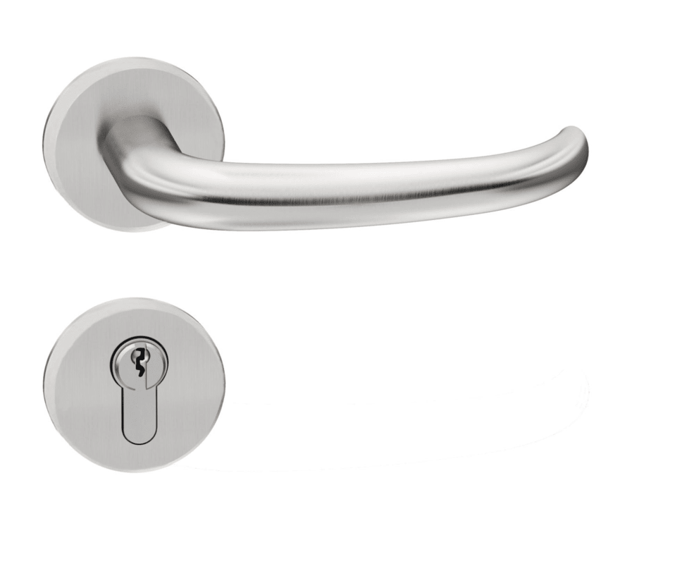 HEWI Drückergarnitur 170XAH01.330; Produkttyp: Drückergarnitur; Produkttyp (Hersteller): Drückergarnitur; Ausführung: Rosette; Befestigungsart Drückerrosette (außen): verdeckt verschraubt; Befestigungsart Drückerrosette (innen): verdeckt verschraubt; Befestigungstechnik: mit Stütznocken; Montageart: aufliegend; Form Drückerrosette: rund; Form Schlüsselrosette (außen): rund; Form Schlüsselrosette (innen): rund; Vierkant: 8 mm; Material: Edelstahl; Material Türdrücker: Edelstahl; Material Rosetteneinleger: Edelstahl; Material Unterkonstruktion (Griffrosette): Kunststoff-Stahlverbundbau; Form Türgriff (innen): gebogen; Form Türgriff (außen): gebogen; Durchmesser Türgriff (innen): 21,3 mm; Durchmesser Türgriff (außen): 21,3 mm; Durchmesser Schlüsselrosette: 55 mm; Länge Türgriff (innen): 142 mm; Länge Türgriff (außen): 142 mm; Höhe Türgriff (innen): 68 mm; Höhe Türgriff (außen): 68 mm; Durchmesser Drückerrosette (außen): 55 mm; Durchmesser Drückerrosette (innen): 55 mm; Höhe Drückerrosette (außen): 10,5 mm; Höhe Drückerrosette (innen): 10,5 mm; Höhe Schlüsselrosette (außen): 10,5 mm; Höhe Schlüsselrosette (innen): 10,5 mm; Lagerung: festdrehbar,wartungsfreies Gleitlager,mit Rückholfeder; Einsatzbereich: Zimmertür,Objekttür; Türart: Vollblatt; Türwerkstoff: Stahl,Holz; Lochung: Rundzylinder gelocht; DIN-Richtung: DIN Links-Rechts; Material Rosette: Edelstahl; Farbe: grau; Farbton: edelstahl; Oberfläche: matt,geschliffen; Oberfläche Türdrücker: geschliffen,matt; Oberfläche Rosette: geschliffen,matt; Oberfläche Rosetteneinleger: geschliffen,matt; Material Unterkonstruktion (Schlüsselrosette): Kunststoff-Stahlverbundbau; Technik: H-Technik; Ausführung Vierkant: Vierkantstift; Türstärke min.: 38,1 mm; Türstärke max.: 48 mm; Norm: DIN EN 179,DIN 18255,DIN EN 1906; Zulassung: für Fluchttüren