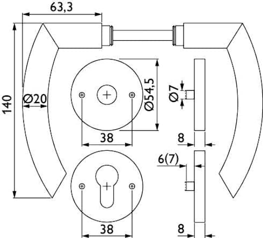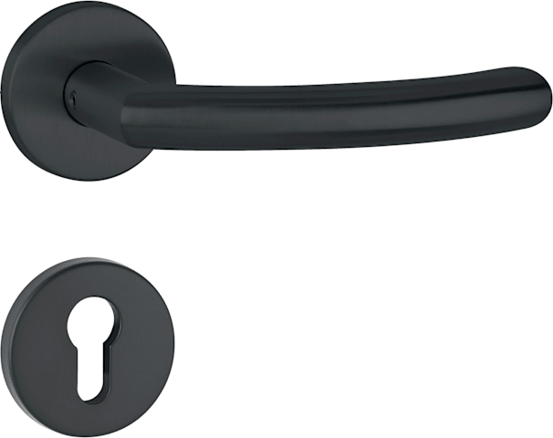 ZT-Drückergarnitur 1804 BASIC 04 - Klasse 3 | mit Rosetten 2273 K | Ausf.: PZ | mit Rückholfeder, Türstärke 38 - 42 mm | Oberfl. 74 (Classic Black, ähnl. RAL 9005)
