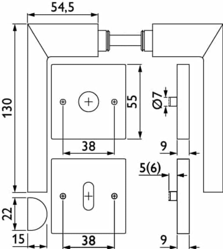 ZT-Drückergarnitur 1813 BASIC 13 - Klasse 3 | mit Rosetten 2211 K | Ausf.: BB | mit Rückholfeder, Türstärke 37 - 44 mm | Oberfl. 60 (Edelstahl matt)