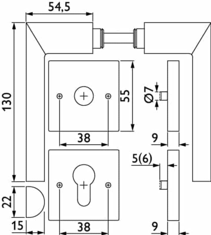 ZT-Drückergarnitur 1813 BASIC 13 - Klasse 3 | mit Rosetten 2211 K | Ausf.: PZ | mit Rückholfeder, Türstärke 37 - 44 mm | Oberfl. 60 (Edelstahl matt)