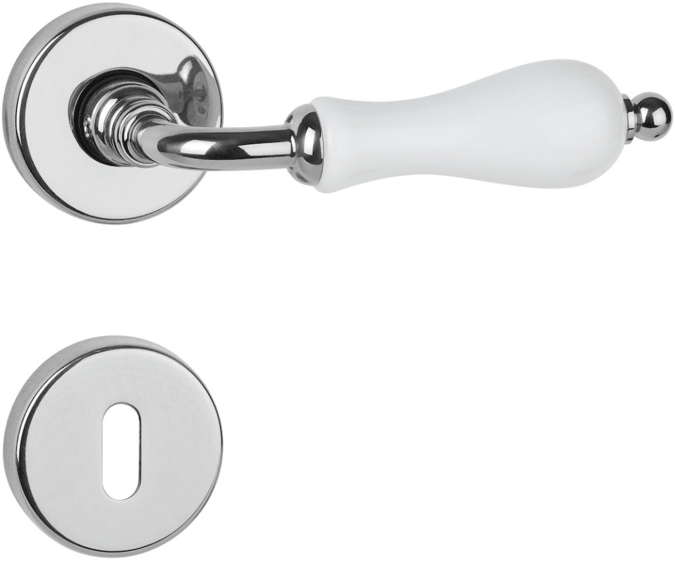 ZT-Drückergarnitur 1038 APPIANO, mit Rosetten 2031, Ausf.: BB, mit Rückholfeder, Türstärke 38 - 42 mm, Oberfl. 04 PW (Glanzchrom/Porzellan weiß)
