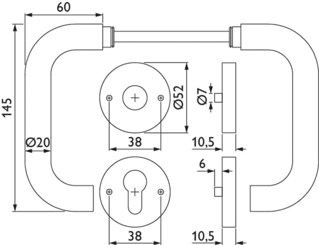 ZT-Drückergarnitur 1801 BASIC 01, mit Rosetten 2036 KB, Ausf.: PZ, mit Rückholfeder, Türstärke 38 - 42 mm, Oberfl. 61 (Edelstahl poliert)