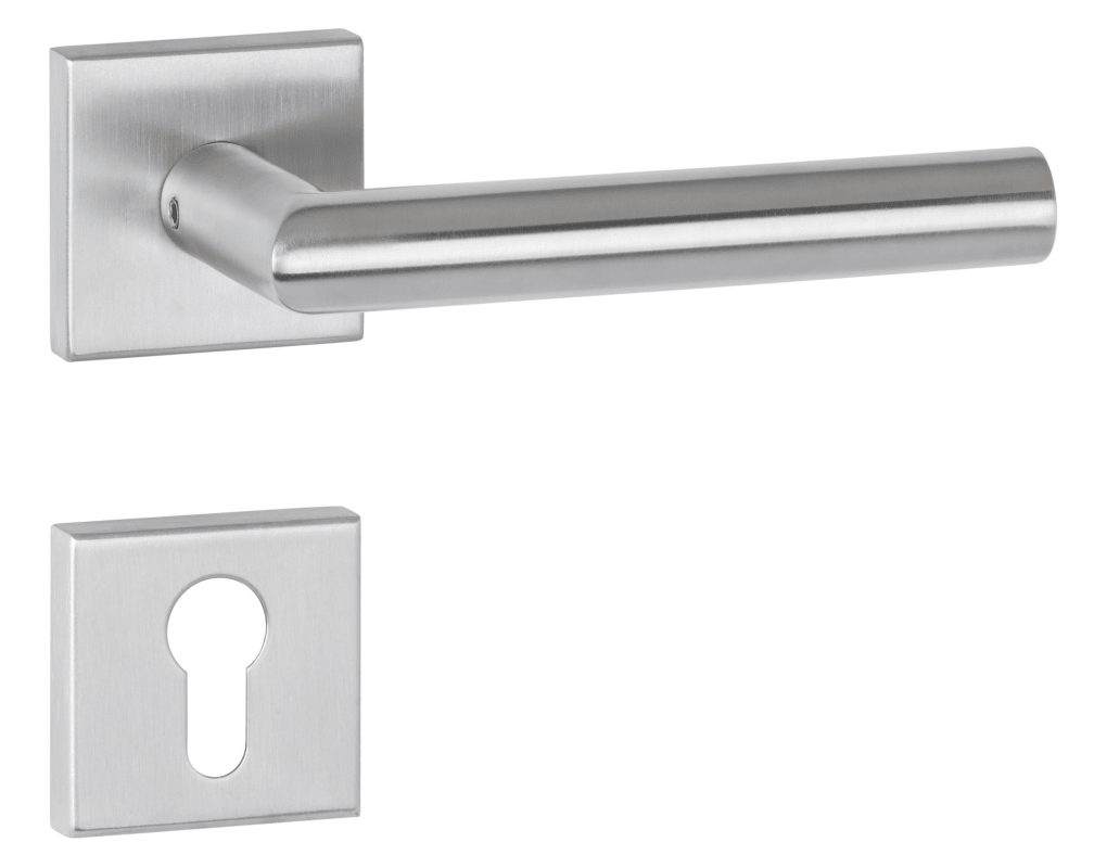 ZT-Drückergarnitur 1802 BASIC 02, mit Rosetten 2011 K & RHF, Ausf.: PZ, mit Rückholfeder, Türstärke 38 - 42 mm, Oberfl. 60 (Edelstahl matt)