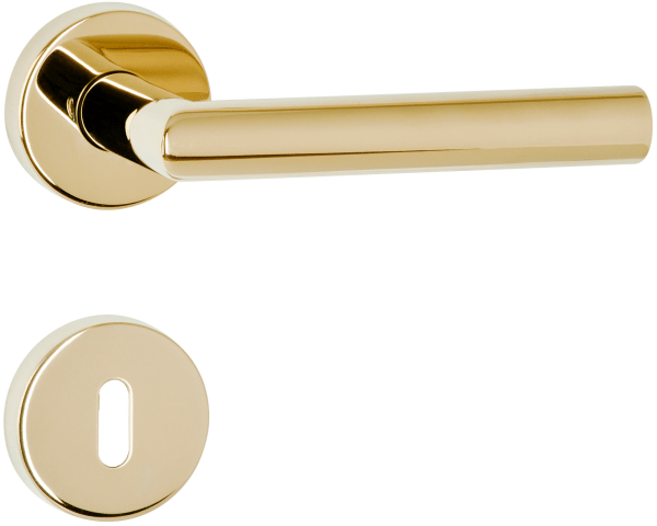 ZT-Drückergarnitur 1802 BASIC 02, mit Rosetten 2036 KB, Ausf.: BB, mit Rückholfeder, Türstärke 38 - 42 mm, Oberfl. 18 (PVD Messingfarben)