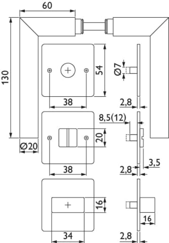 Bad-Drückergarnitur 1802 BASIC 02, mit MAGCLIP Rosetten 2611 FL & RHF, Ausf.: BAD, mit WC-Riegel ktg. 3220/3225, 6 mm VK, mit Hülsen 7/8 mm, Türstärke 37 - 47 mm, Oberfl. 71 (Bronzefarben matt)