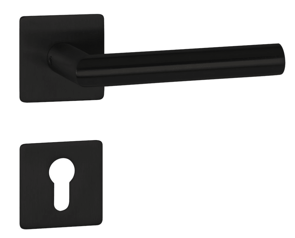 ZT-Drückergarnitur 1802 BASIC 02, mit MAGCLIP Rosetten 2611 FL & RHF, Ausf.: PZ, fest/drehbar, mit Rückholfeder, Tst. 37 - 47 mm, Oberfl. 74 (Classic Black PVD, ähnl. RAL 9005)