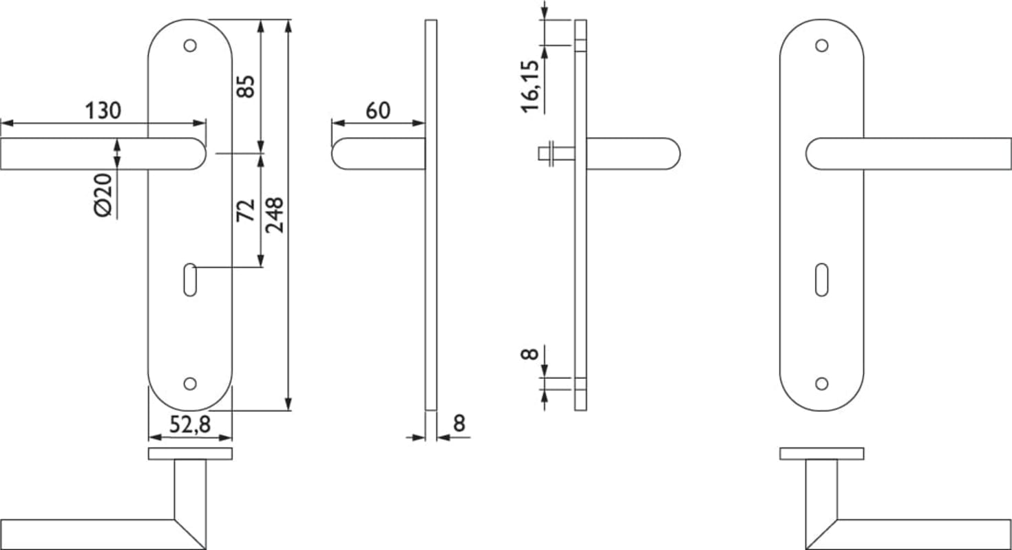 ZT-Drückergarnitur 1802 BASIC 02, mit Langschild 2189 RV - sichtbar geschraubt, Ausf.: BB 72 mm, fest/drehbar, mit Rückholfeder, Oberfl. 60 (Edelstahl matt)