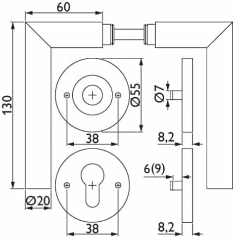• Höhe Drückerrosette (außen): 8,2 mm