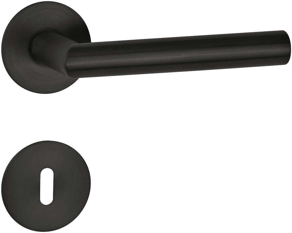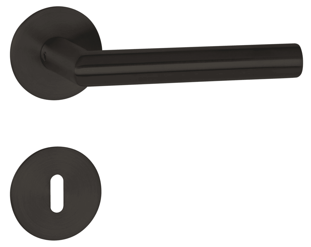 ZT-Drückergarnitur 1802 BASIC 02, mit MAGCLIP Rosetten 2636 FL & RHF, Ausf.: BB, fest/drehbar, mit Rückholfeder, Tst. 37 - 47 mm, Oberfl. 72 (Smoke Black)