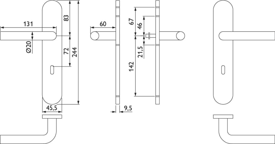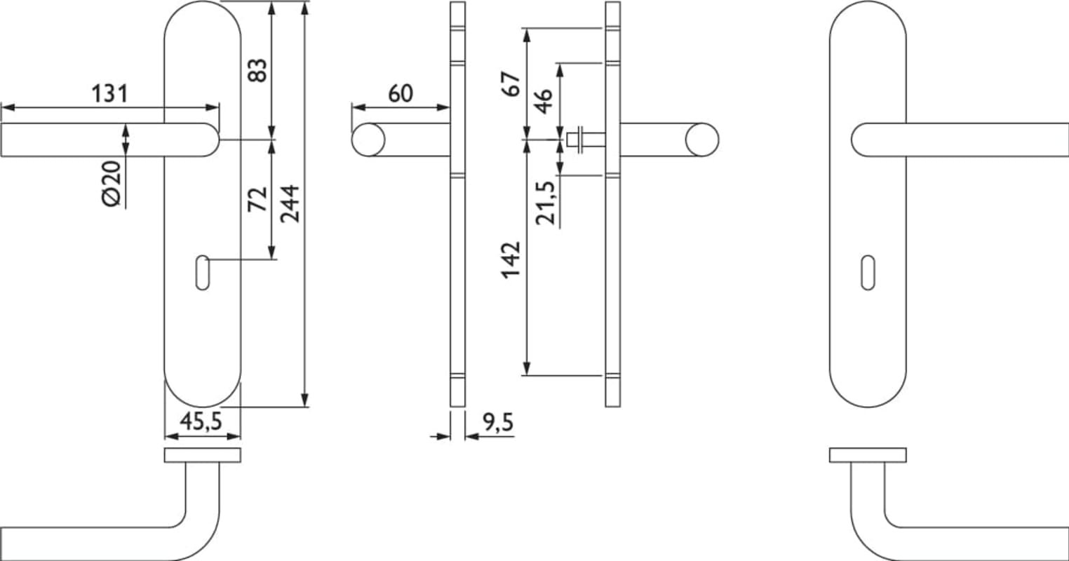 Hermat Drückergarnitur 1803,LS ov.,BB72/8,ER matt