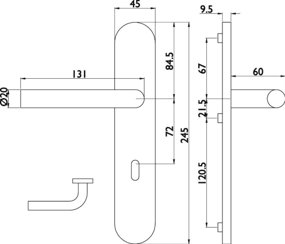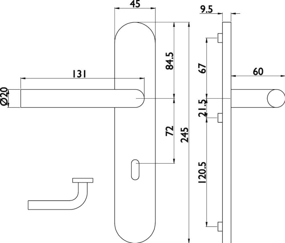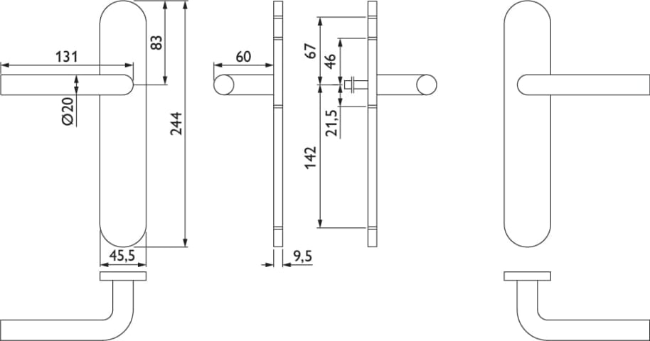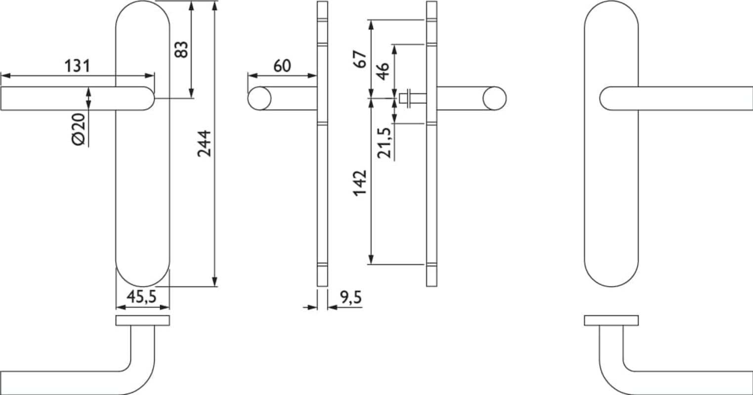 ZT-Drückergarnitur 1803 BASIC 03, mit Langschild 2002 U, Ausf.: Blind, Oberfl. 60 (Edelstahl matt)