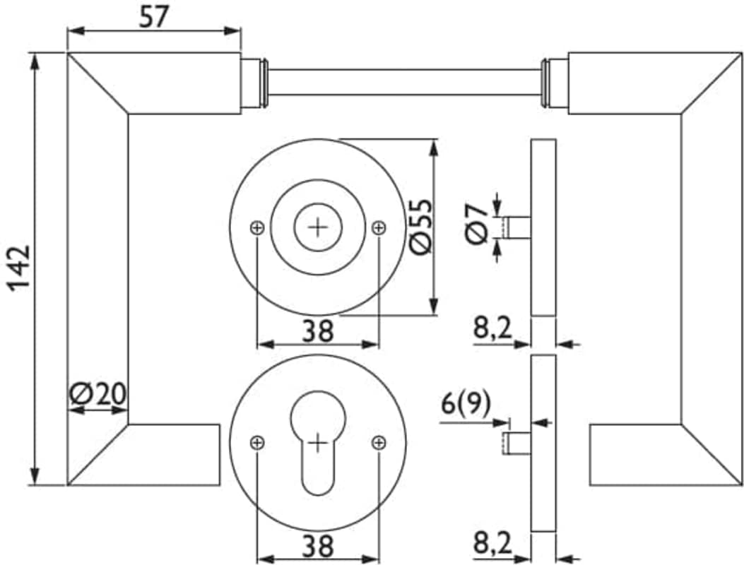 Höhe Schlüsselrosette (außen): 8,2 mm