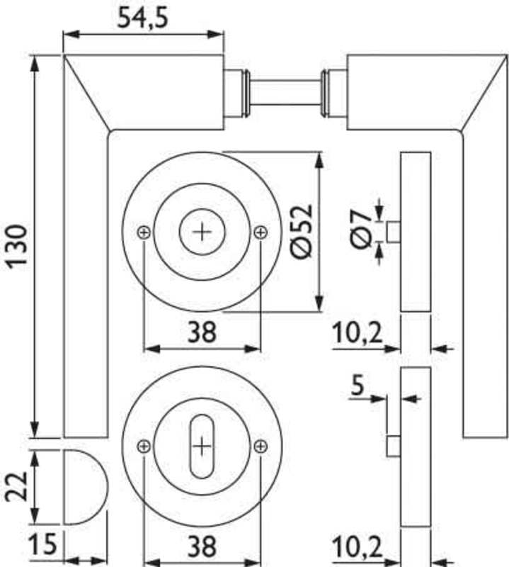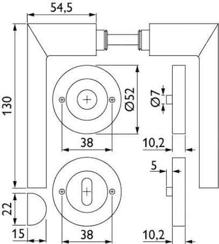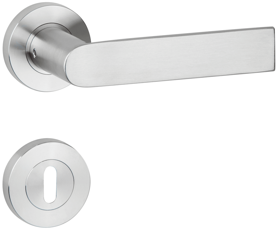 ZT-Drückergarnitur 1813 BASIC 13, mit Schraubrosette 2061, Ausf.: BB, fest/drehbar, mit Rückholfeder, Tst. 38 - 42 mm, Oberfl. 60 (Edelstahl matt)