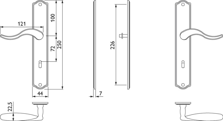 Hermat Drückergarnitur 1078,LS ov.,BB72/8,ms pol.,o.No.