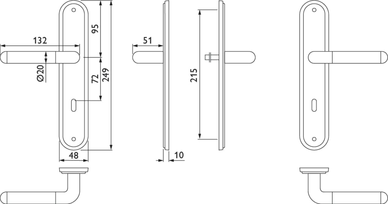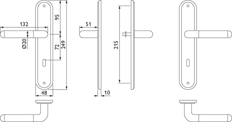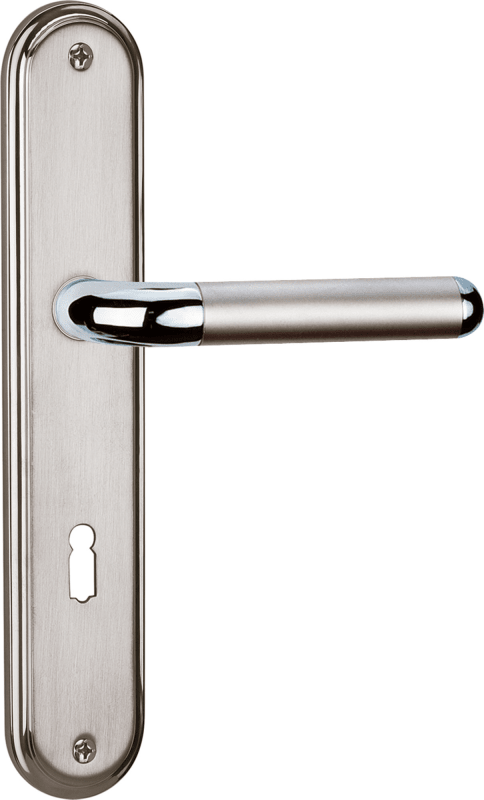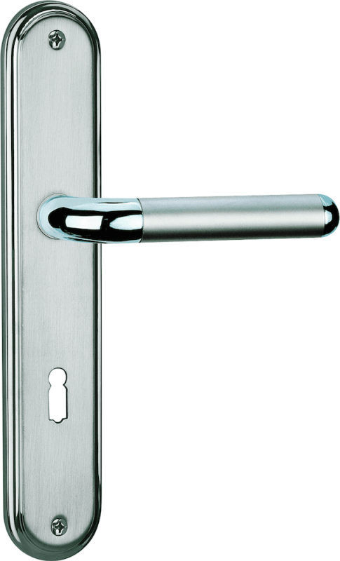 ZT-Drückergarnitur 1110 CLUB, mit Langschild 2075 R fest/drehbar mit RHF, Ausf.: BB 72 mm, fest/drehbar mit Hochhaltefeder, Oberfl. 65 (Glanzchrom/Edelstahl matt)