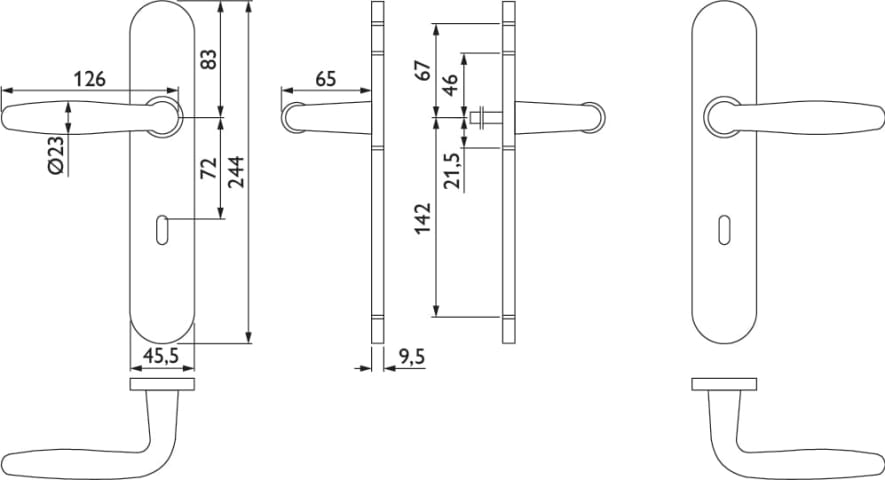 ZT-Drückergarnitur 1931 ER DREAM, mit Langschild 2002 U, Ausf.: BB 72 mm, fest/drehbar mit Hochhaltefeder, Oberfl. 18 (PVD Messingfarben)