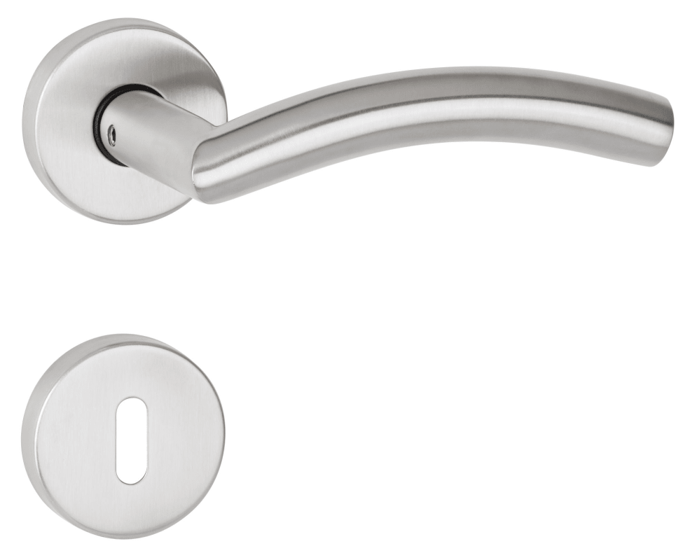 ZT-Drückergarnitur 1231 MOON / 19 mm, mit Rosetten 2036 ST, Ausf.: BB, mit Rückholfeder, Türstärke 38 - 42 mm, Oberfl. 60 (Edelstahl matt)