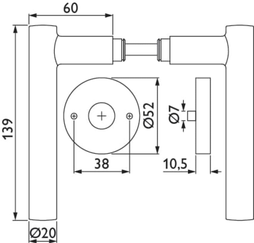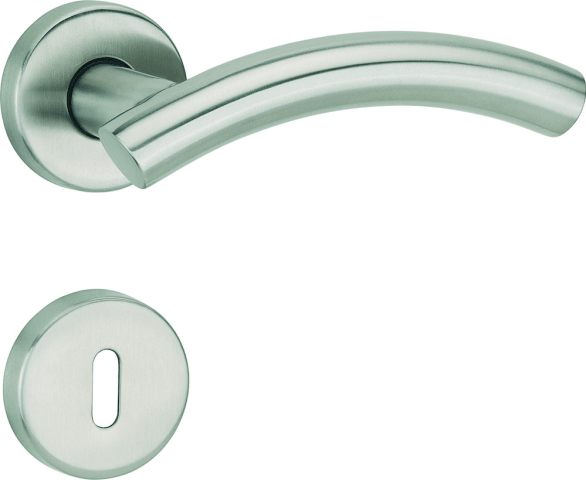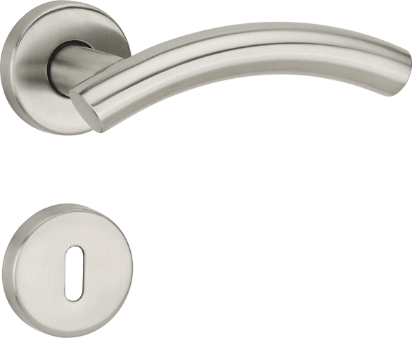 ZT-Drückerpaar 1233 ER MOON II, mit Rosetten 2036 KB, ohne Schlüsselrosetten, mit Rückholfeder, Türstärke 38 - 42 mm, Oberfl. 60 (Edelstahl matt)