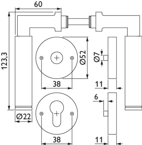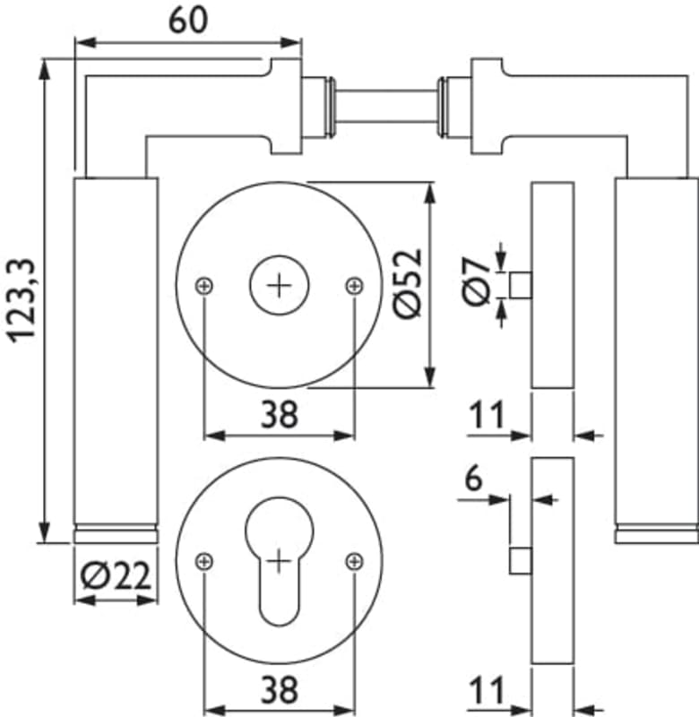 Hermat Drückergarnitur 1831/2336.SC,Ros.,rd.,PZ,8,ER,TS 37-47