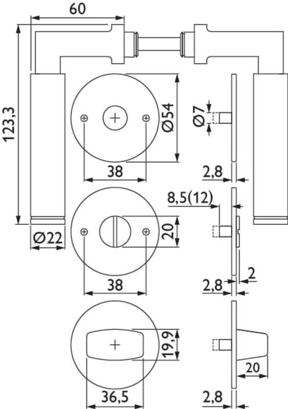 Hermat Drückergarnitur 1831/2636.FL/3221/3216,Ros.,rd.,WC/S,8(8),ER,TS 37-47