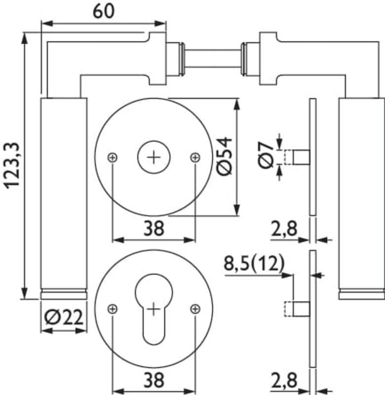 Hermat Drückergarnitur 1831/2636.FL,Ros.,rd.,PZ,8,ER,TS 37-47
