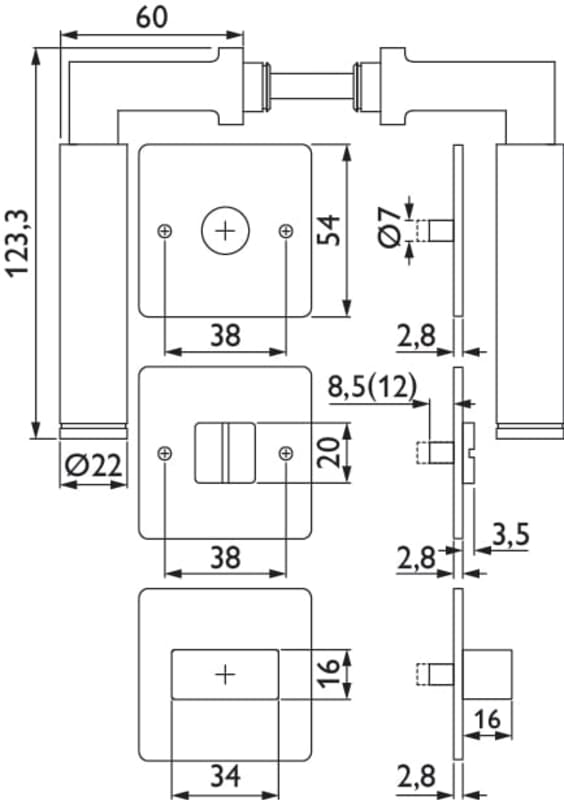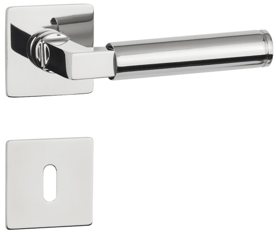 Bad-Drückergarnitur 1831 INFINITY, mit MAGCLIP Rosetten 2611 FL & RHF, Ausf.: BAD, mit WC-Riegel ktg. 3220/3225, 6 mm VK, mit Hülsen 7/8 mm, Türstärke 37 - 47 mm, Oberfl. 61 (Edelstahl poliert)