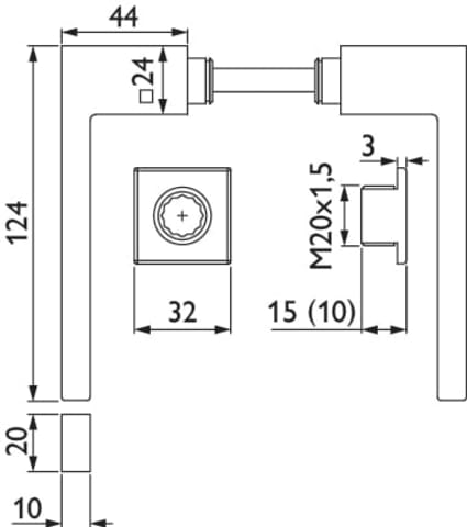 ZT-Drückerpaar 1682L/2401 Smart XS-Ros. kt., kantig /ohne Schlüsselrosette, für Standard Türstärke 38 - 42 mm, Oberfl. 60 (Edelstahl matt)