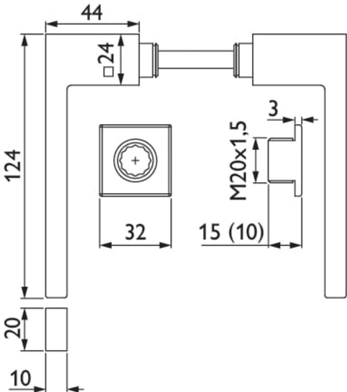 ZT-Drückerpaar 1682L/2401 Smart XS-Rosette k., kantig /ohne Schlüsselrosette, für Standard Türstärke 38 - 42 mm, Oberfl. 71 (Bronzefarben matt)