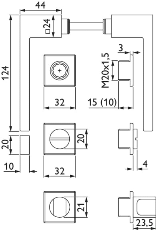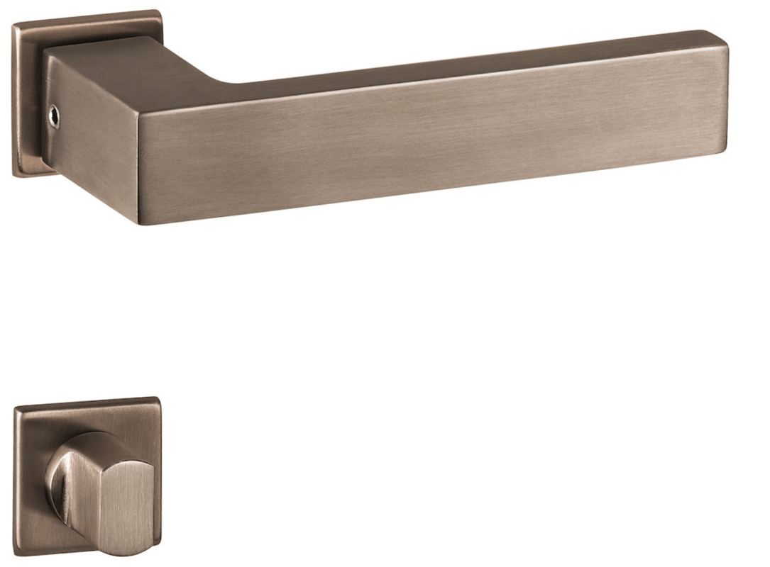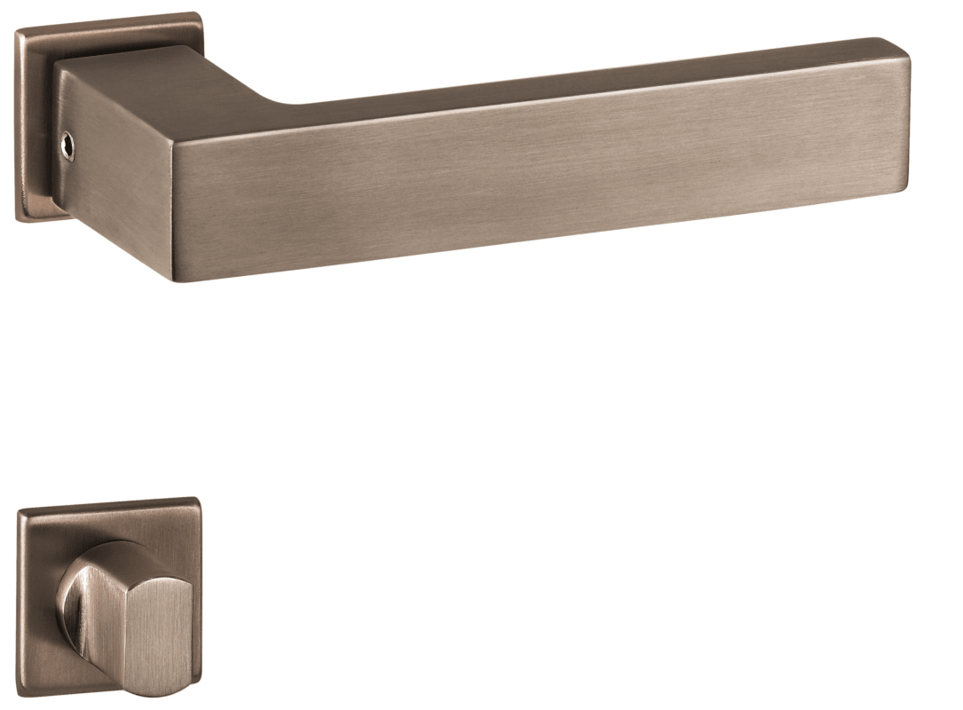Bad-Drückergarnitur 1682L/2401 Smart XS-Rosette k, mit kantiger BAD-Rosette und WC-Riegel, Ausf.: BAD, für Standard Türstärke 38 - 42 mm, Oberfl. 71 (Bronzefarben matt)