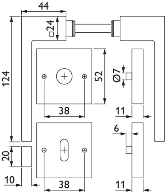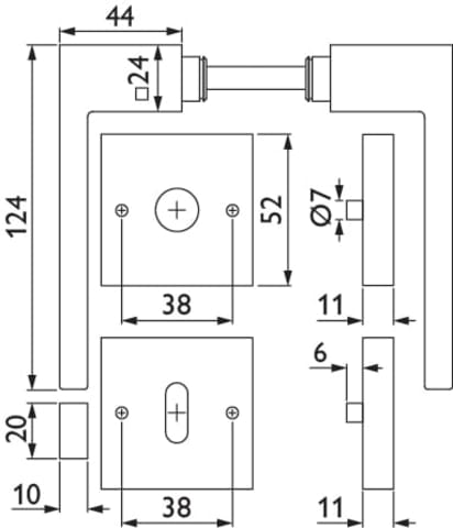 ZT-Drückergarnitur 1682 L WEST, mit Rosetten 2011 KD & RHF, Ausf.: BB, mit Rückholfeder, Türstärke 38 - 42 mm, Oberfl. 60 (Edelstahl matt)