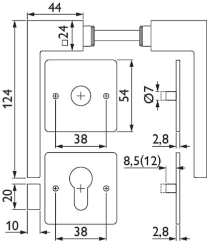 Hermat Drückergarnitur 1682.L/2611,Ros.,eck.,PZ,8,smoke bla.,TS 37-47
