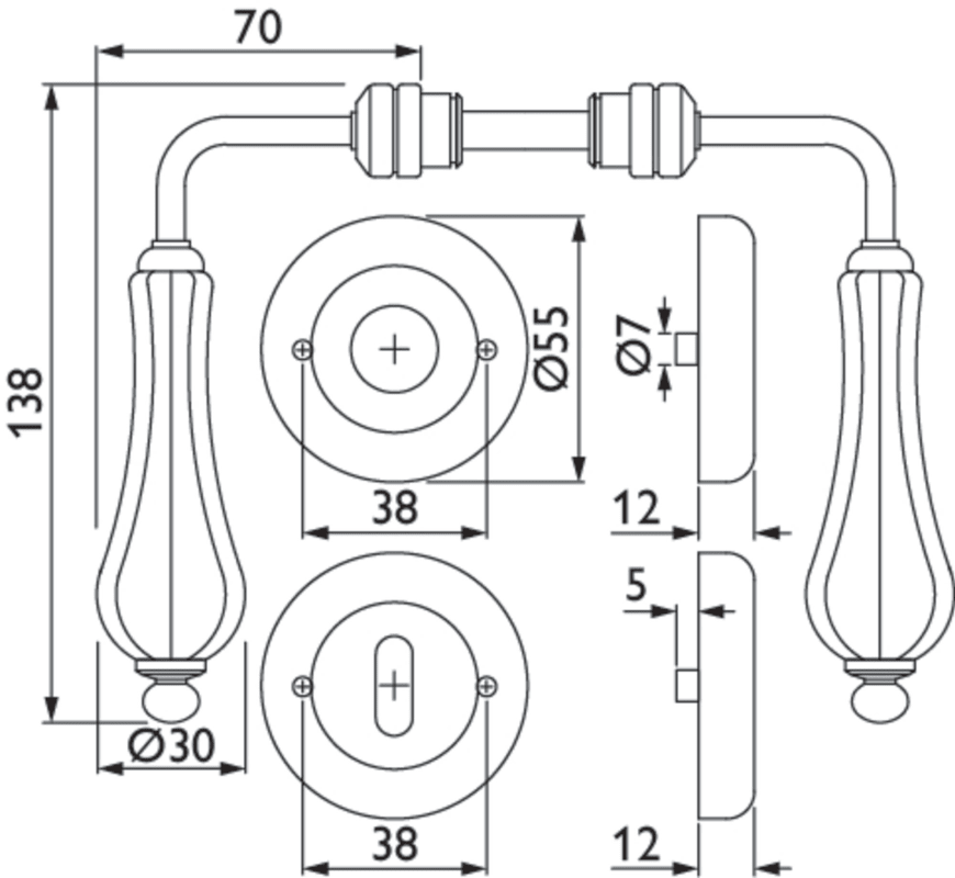 Hermat Drückergarnitur 1048,Ros.,rd.,BB,8,eis.ant.schw./Porz.ws.