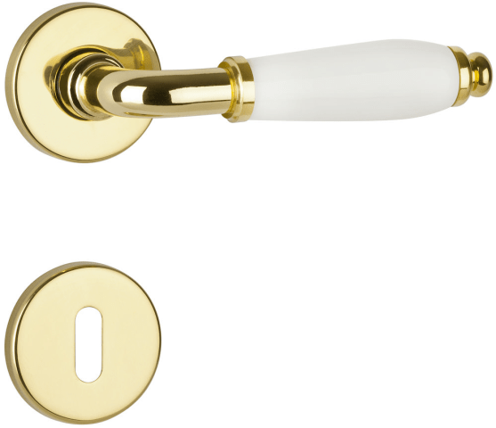 ZT-Drückergarnitur 1157 LILLE, mit Rosetten 2074, Ausf.: BB, mit Rückholfeder, Oberfl. 01 W (Messing poliert/weiß)