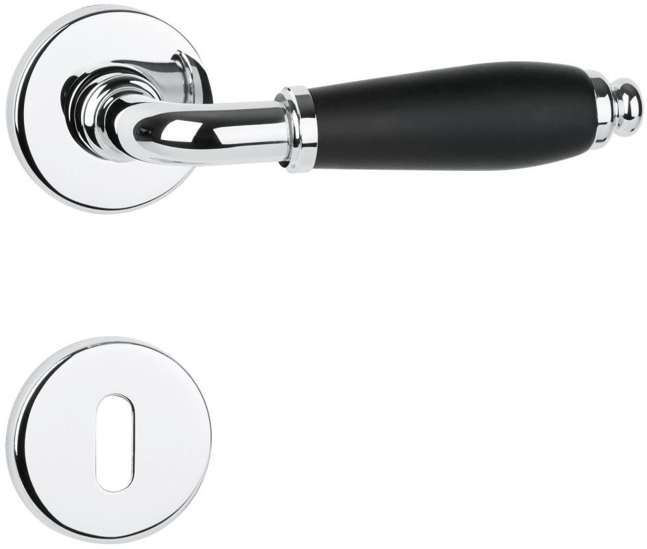 ZT-Drückergarnitur 1157 LILLE, mit Rosetten 2074, Ausf.: BB, mit Rückholfeder, Oberfl. 04 S (Glanzchrom/schwarz)