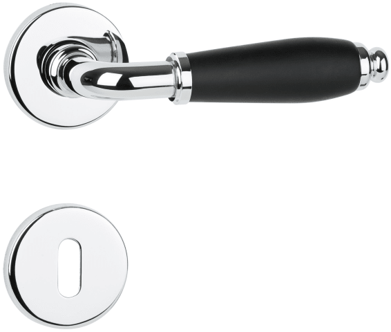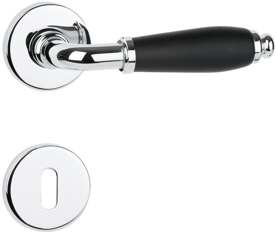 ZT-Drückergarnitur 1157 LILLE, mit Rosetten 2074, Ausf.: PZ, mit Rückholfeder, Oberfl. 04 S (Glanzchrom/schwarz)
