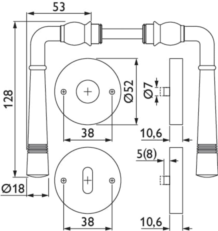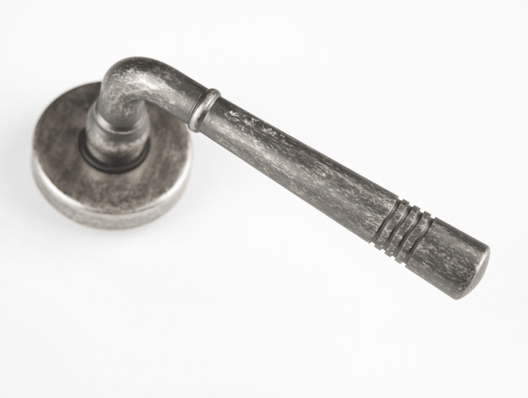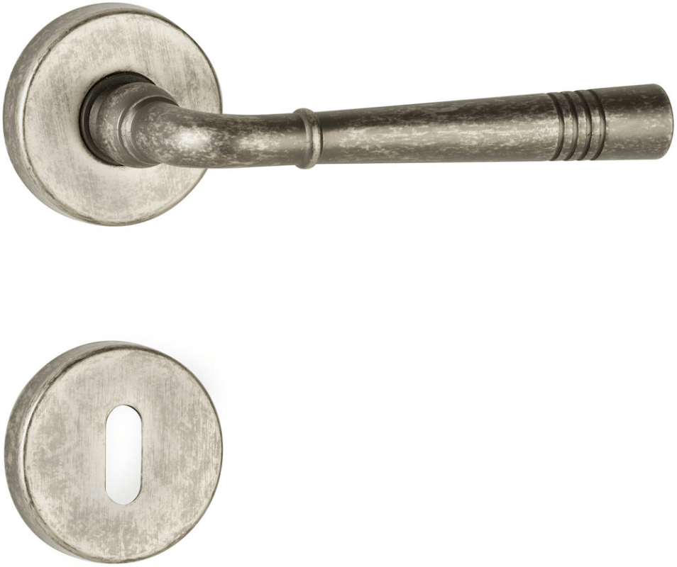 ZT-Drückergarnitur 1174 LYON, mit Rosetten 2031 K, Ausf.: BB, mit Rückholfeder, Türstärke 38 - 42 mm, Oberfl. 06A (Eisenfarben Antik schwarz)