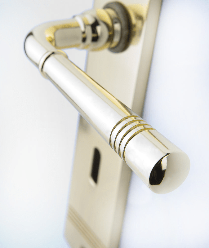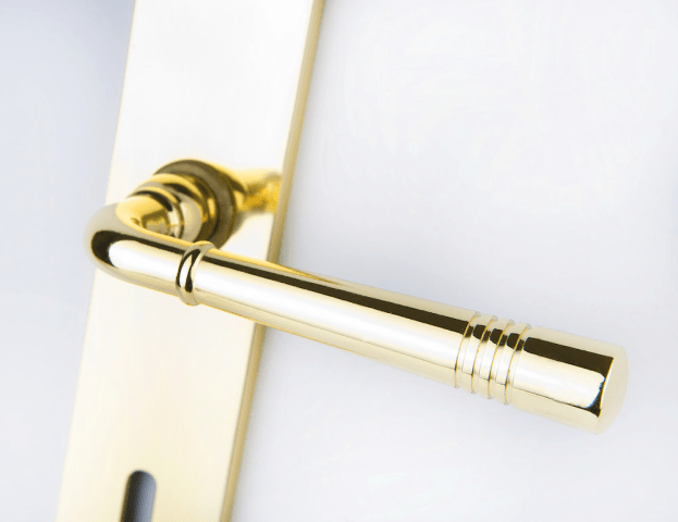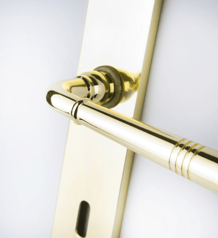 ZT-Drückergarnitur 1174 LYON, mit Langschild 2274, Ausf.: BB 72 mm, Oberfl. 01 (Messing poliert)
