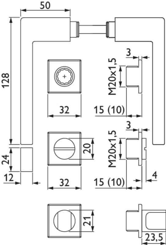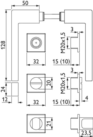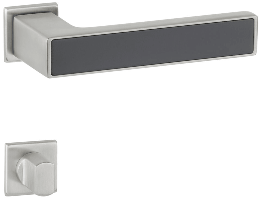 Bad-Drückergarnitur 1682 MAG/2401 Smart XS-Ros. k, kantig / mit kantiger BAD-Rosette und WC-Riegel, Ausf.: BAD, für Standard Türstärke 38 - 42 mm, Oberfl. 20 S (PVD Edelstahlfarben/schwarz)