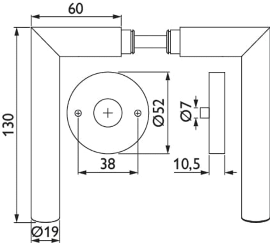ZT-Drückerpaar 1231 R MOON, mit Rosetten 2036 KB, ohne Schlüsselrosetten, mit Rückholfeder, Türstärke 38 - 42 mm, Oberfl. 18 (PVD Messingfarben)