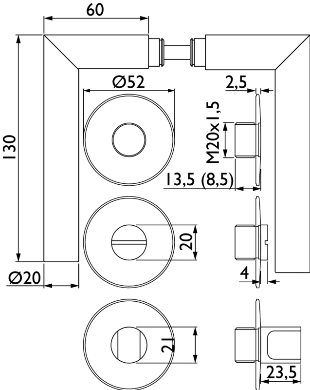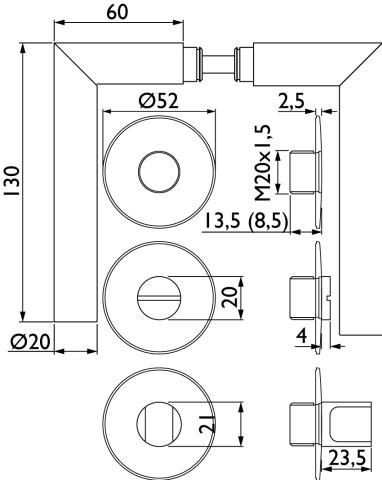 Hermat Drückergarnitur 1802/2403,Ros.,rd.,WC/S,8(8),cl.black PVD,TS 38-42