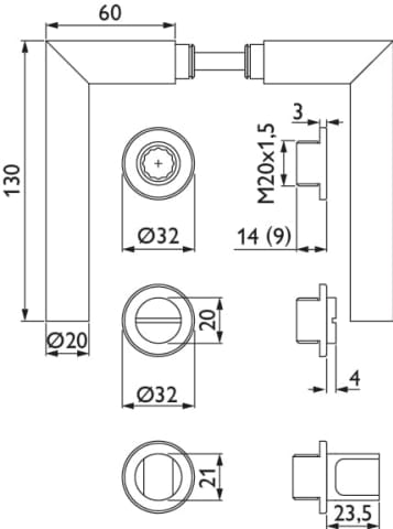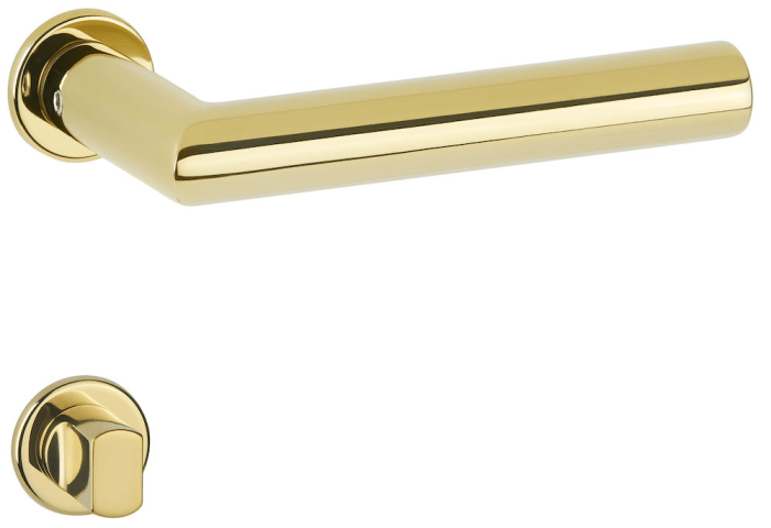 Bad-Drückergarnitur 1802/2402 Smart XS-Rosette, mit runder BAD-Rosette und WC-Riegel, Ausf.: BAD, für Standard Türstärke 38 - 42 mm, Oberfl. 18 (PVD Messingfarben)