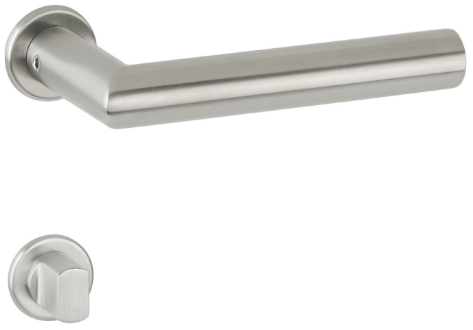 Bad-Drückergarnitur 1802/2402 Smart XS-Rosette, mit runder BAD-Rosette und WC-Riegel, Ausf.: BAD, für Standard Türstärke 38 - 42 mm, Oberfl. 60 (Edelstahl matt)