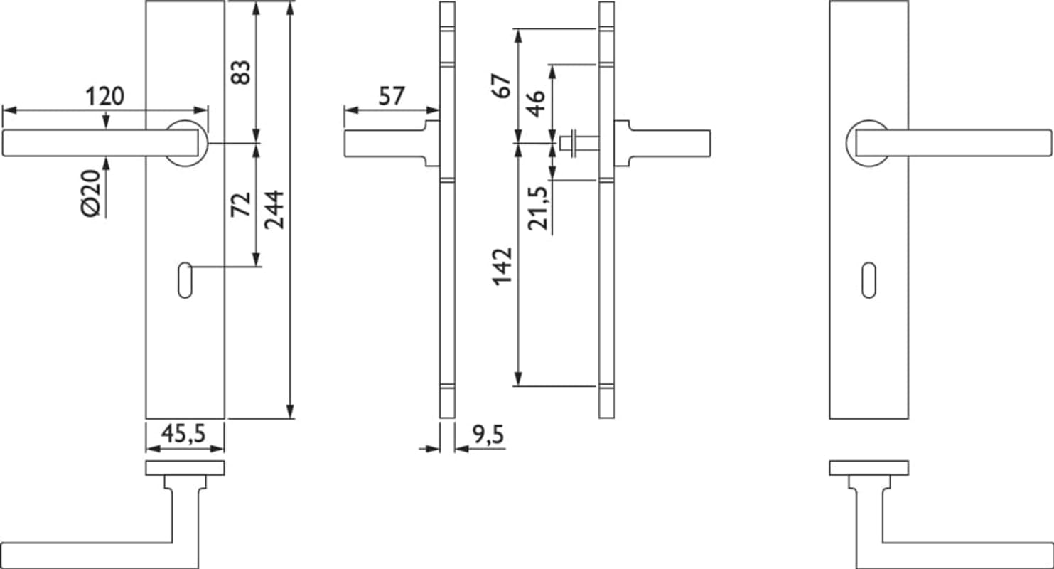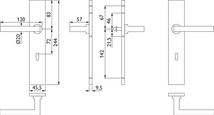 ZT-Drückergarnitur 1835 SQUARE, mit Langschild 2002 K, Ausf.: BB 72 mm, Oberfl. 60 (Edelstahlfarben matt)