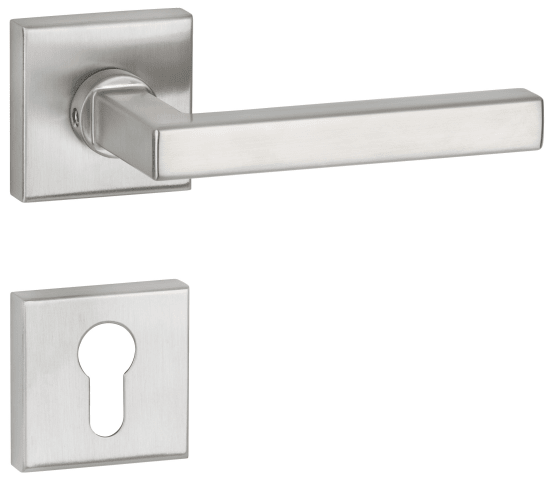 ZT-Drückergarnitur 1835 SQUARE, mit Smart-Clip Rosetten 2311 SC & RHF, Ausf.: PZ, fest/drehbar, mit Rückholfeder, Tst. 37 - 47 mm, Oberfl. 60 (Edelstahlfarben matt)