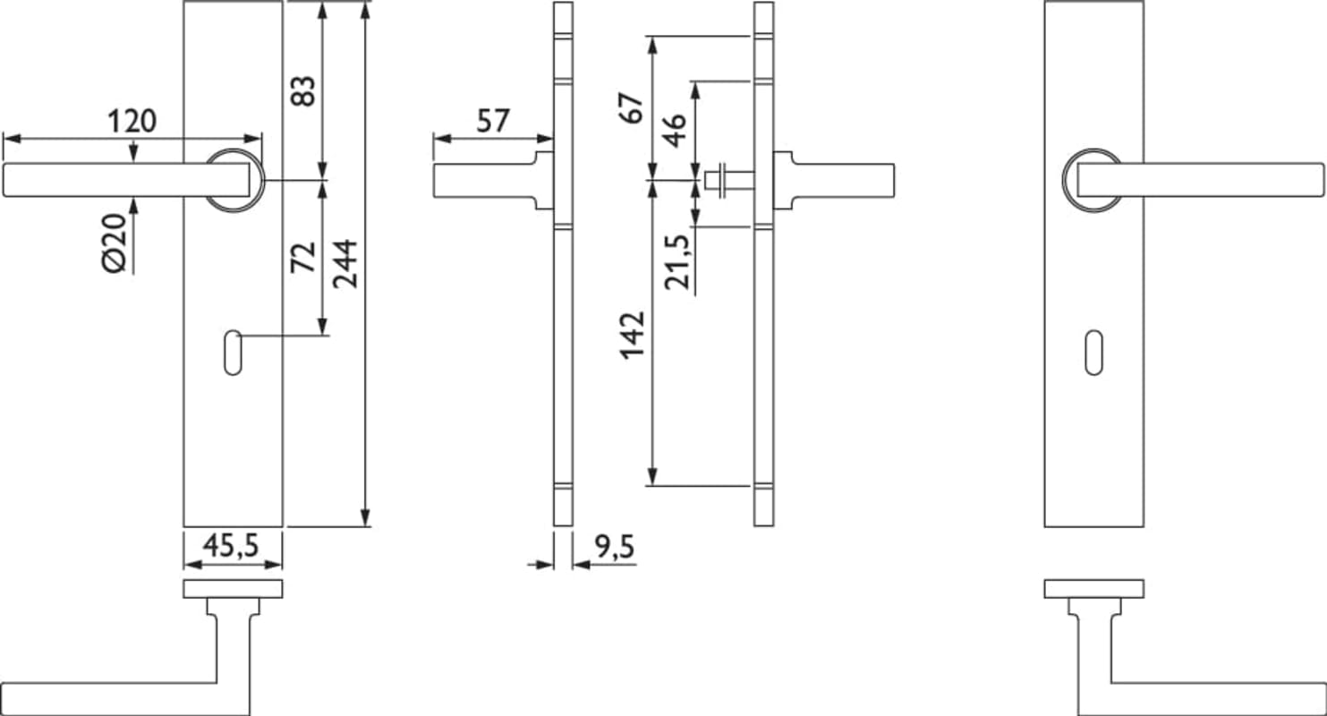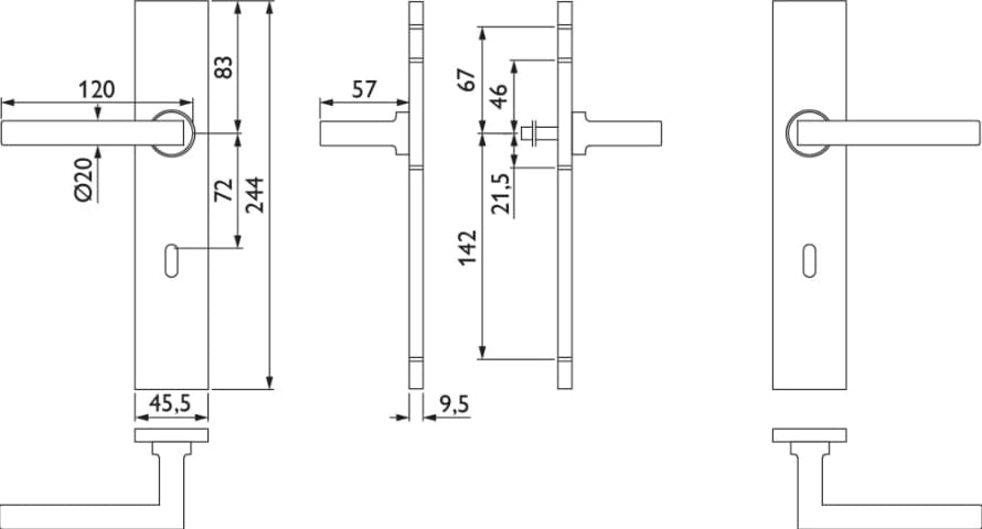 ZT-Drückergarnitur 1835 SQUARE, mit Langschild 2002 K - Befestigung unsichtbar, Ausf.: BB 72 mm, Tst. 37 - 50 mm, fest/drehbar, mit Rückholfeder, Oberfl. 61 (Edelstahl poliert)