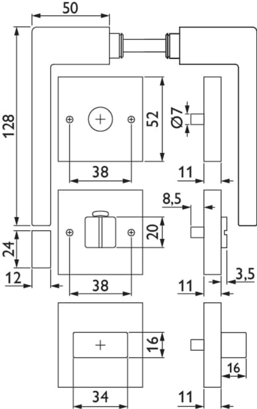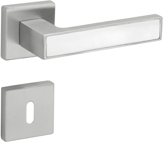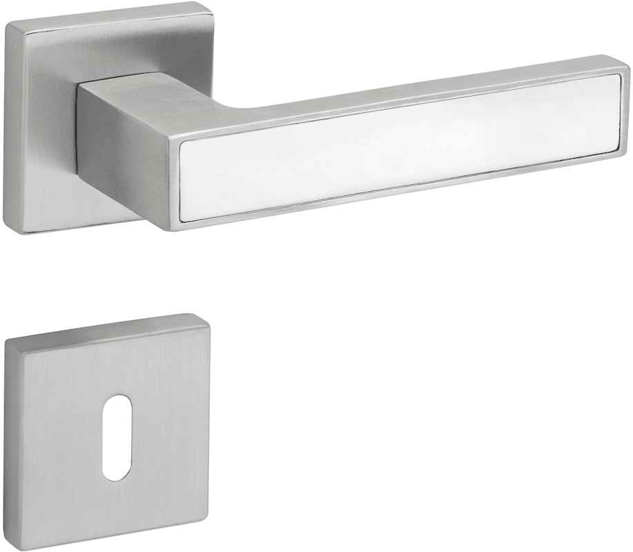 Bad-Drückergarnitur 1682 MAG TEMPTATION, mit Smart-Clip Rosetten 2311 SC & RHF rot/weiß, Ausf.: BAD, mit WC-Riegel ktg. 3220/3225, 6 mm VK, mit Hülsen 7/8 mm, Türstärke 37 - 47 mm, Oberfl. 63 (PVD Ede