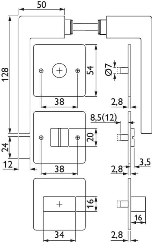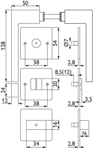 Hermat Drückergarnitur 1682.MAG/2611,Ros.,eck.,WC/S,8(8),ER.pol./ma.,TS 37-47