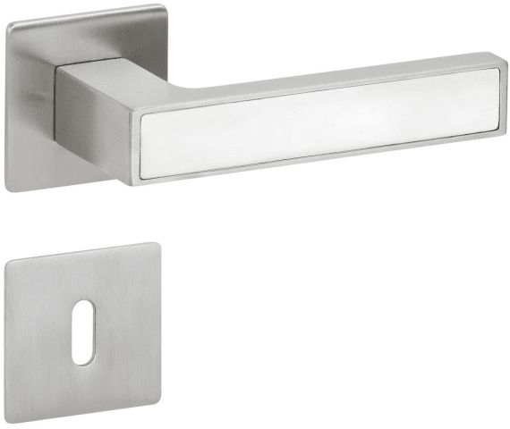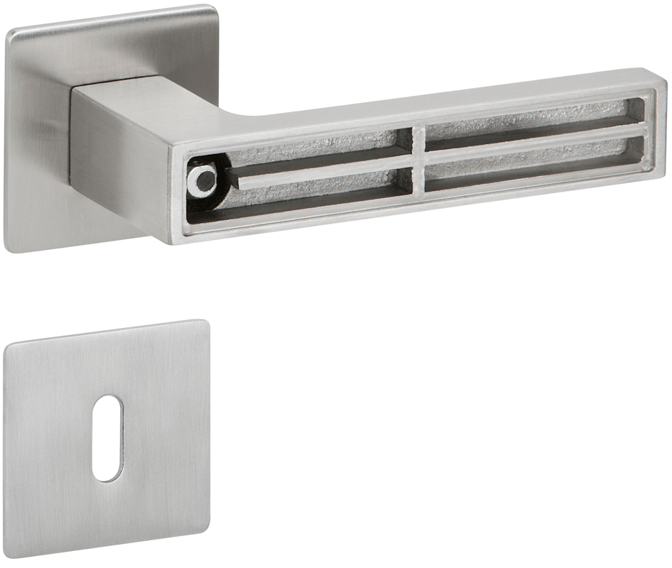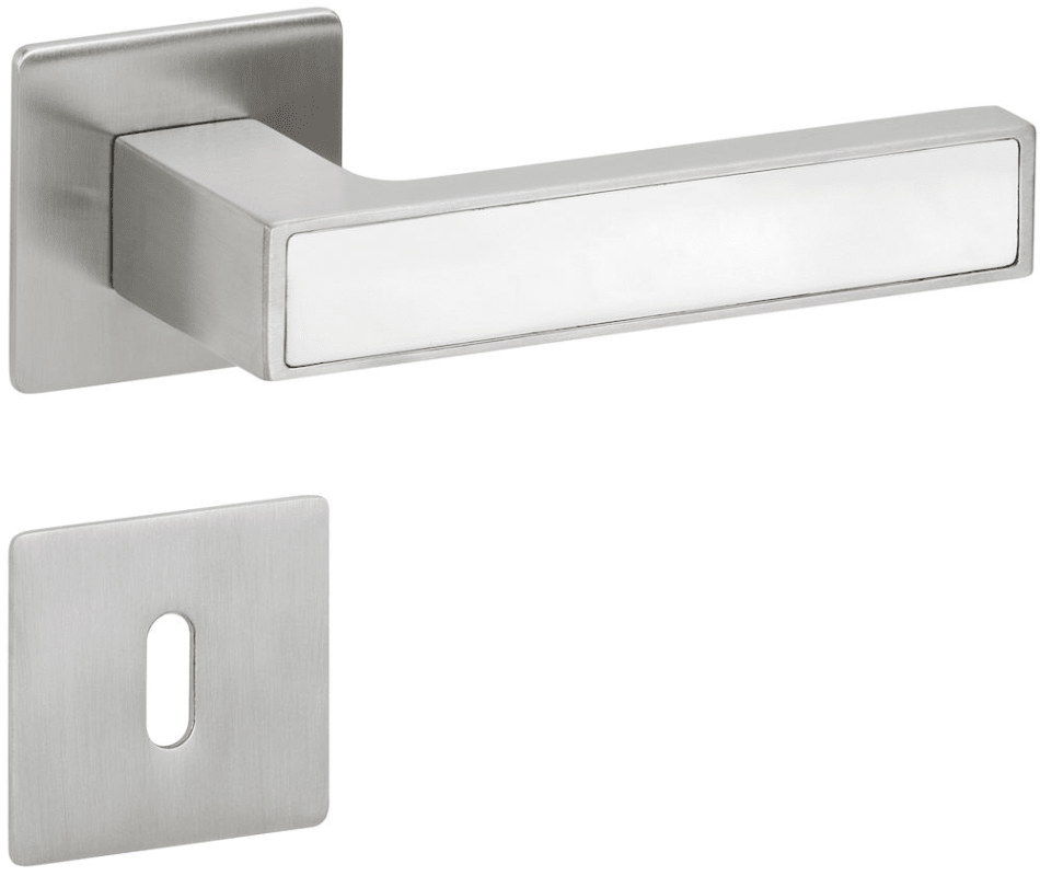 ZT-Drückergarnitur 1682 MAG TEMPTATION m. Einleger, mit MAGCLIP Rosetten 2611 FL & RHF, Ausf.: BB, fest/drehbar, mit Rückholfeder, Tst. 38 - 45 mm, Oberfl. 63 (PVD Edelstahlfarben/Edelstahl poliert)