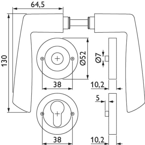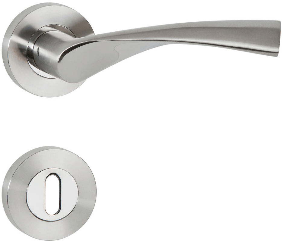 ZT-Drückergarnitur 1290 BIC TWIST, mit Schraubrosette 2061, Ausf.: PZ, fest/drehbar, mit Rückholfeder, Tst. 38 - 45 mm, Oberfl. 63 (Edelstahl poliert/Edelstahl matt)